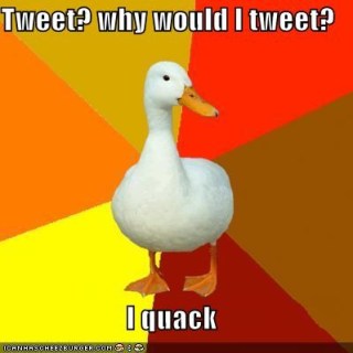 Talked to my marketing rep yesterday and she very strongly encouraged me to start tweeting. How does one tweet? Not what the tweets should be about but how to get started? Do I just google tweeting? I don’t mean to sound like a twit about tweeting but I need to know how to go about this . . .