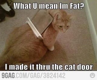 I haven’t said it yet, but all through this time, Tika has been overweight. In fact, I don’t like bringing her to the vet because they always scold me about her weight. I give her low-fat cat food and everything they say, but it doesn’t help. Maybe she has a thyroid problem. I told you that mostly so I could post the picture at the bottom of this post. That’s totally what would happen if she tried to use a cat door.
