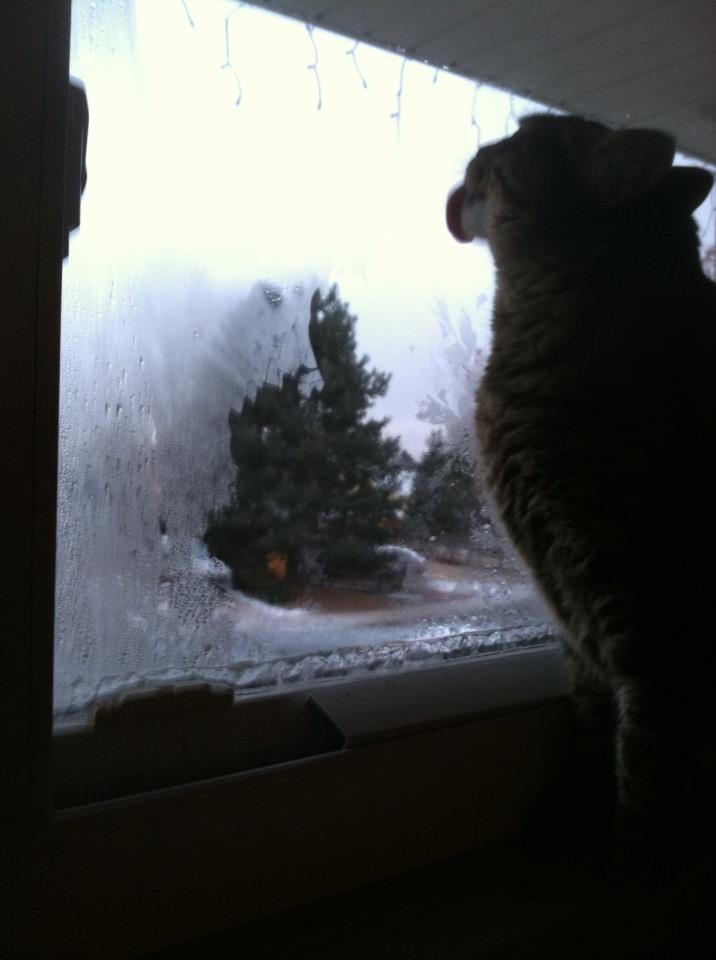 One of my cats, Daisy, like to lick windows. This is part of her morning ritual. I used to think she liked to do it when there was condensation, but she even does it on non-condensation mornings. So maybe she likes that it’s cold. Or maybe she’s just a furry little weirdo. I would label her personality as The Strange.