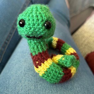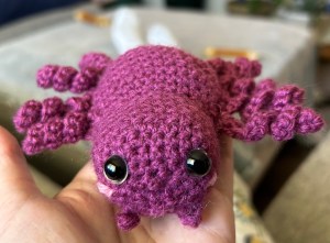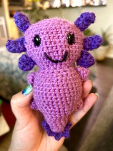 I started crocheting a handful of years ago, creating afghans, sweaters, and the like. In July, I decided to try a different form of crochet called amigurumi. It’s basically making toys out of yarn.